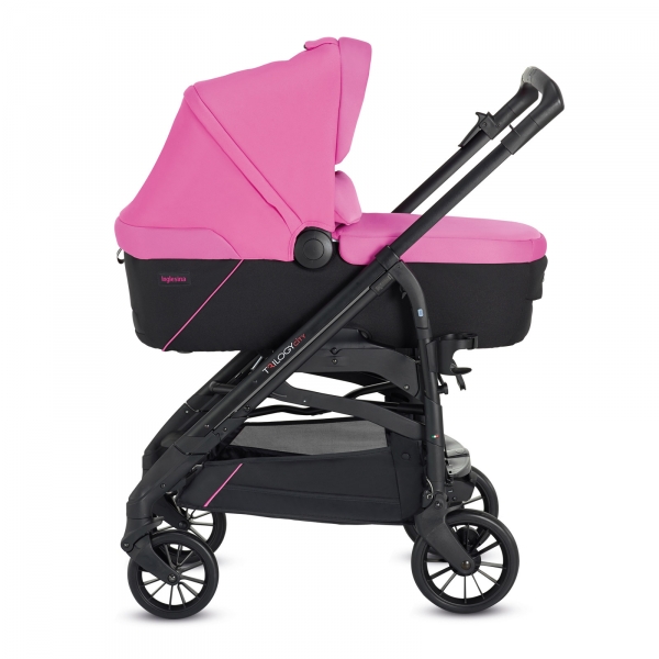 Коляска 3 в 1 Inglesina Trilogy System Colors PEGGY PINK – практичная модульная система. Просторная люлька с жёстким ортопедическим дном быстро устанавливается и снимается с рамы, используется как переноска, автокресло (требуются ремни). Каркас дополнен вентиляционной сетью. Высокие бортики обтянуты прочным мягким текстилем.