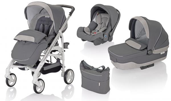 Inglesina Trilogy System Argento – модульная коляска 3 в 1, обеспечивающая максимальную практичность и комфорт. Итальянское качество в этой модели сочетается с функциональностью. Вся коляска буквально напичкана достоинствами – запатентованная Инглезиной система сложения коляски одной рукой (зонтик), поворотные передние колеса, многофункциональное шасси, большой капюшон с защитой от ультрафиолета UF 50+, большой и теплый чехол для ножек малыша, корзина для покупок, сумка для мамы.