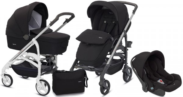 Inglesina Trilogy System Коляска 3 в 1 Inglesina Trilogy System (Total Black) – модульная коляска 3 в 1, обеспечивающая максимальную практичность и комфорт. Итальянское качество в этой модели сочетается с функциональностью. Вся коляска буквально напичкана достоинствами – запатентованная Инглезиной система сложения коляски одной рукой (зонтик), поворотные передние колеса, многофункциональное шасси, большой капюшон с защитой от ультрафиолета UF 50+, большой и теплый чехол для ножек малыша, корзина для покупок, сумка для мамы.