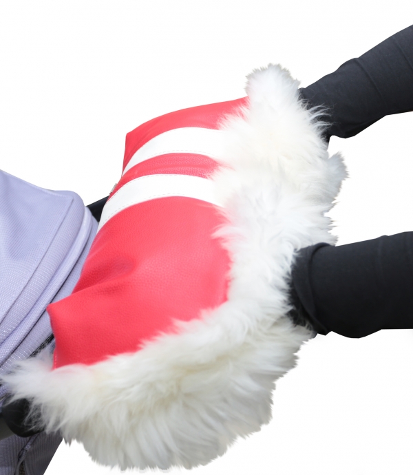 Муфта для рук на коляску Esspero Polar Bear (Натуральный мех) Red