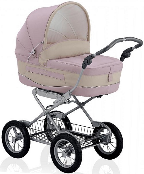 Если мама или папа хотят видеть классическую коляску, предпочитают ретро стиль и расцветки, то можно на том же шасси с вездеходными колёсами установить другую люльку, получая набор – Inglesina Vittoria Ergo Bike.